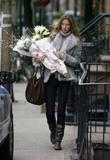 Gisele Bundchen with a bunch of flowers heads home in West Village