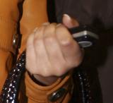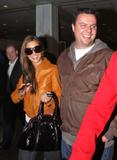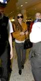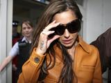 Cheryl Tweedy smiling while arriving at Heathrow airport