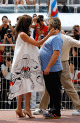 Angelina Jolie with Jack Black at "Kung Fu Panda" photocall