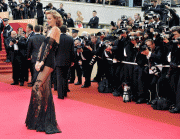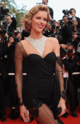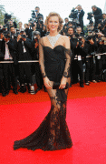Eva Herzigova sexy and leggy black lace dress at the "Che" premiere in Cannes