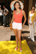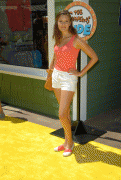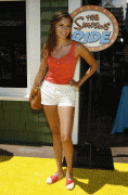 Maggie Grace sweet n'leggy at the Simpsons ride soiree