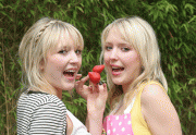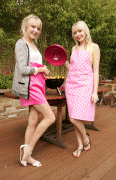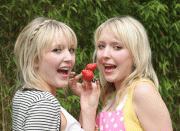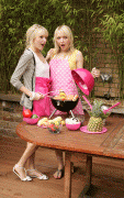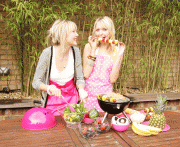 Sam and Amanda Marchant showing pink while promoting "Eat in Color" in London