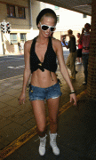 Sarah Harding sexy in halter top and denim short shorts at Brighton Conference Center