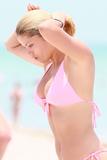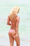 Natalia Bush in pink bikinis takes a dip in Miami Beach
