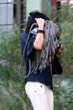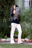 Vanessa Hudgens is Cute in sweats, black top andwhite pants in Hollywood