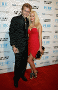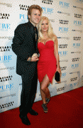 The two lovebirds arrived hand-in-hand with Spencer sporting a dark suit and a number of crystal pendants while Heidi wore a strapless, hot pink dress which she had designed, Christian Louboutin shoes and purse.